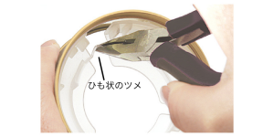【底面側】内部ホルダー結合部の「ひも状のツメ」をペンチ等を使って折り曲げます。