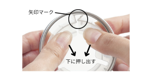 【天面側】図のように、セラミックを下に押し出し、取り出してください。